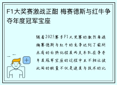 总的来说,梅赛德斯与红牛的年度冠军争夺将是2025赛季F1的最大看点之一。两队的对抗不仅是车手之间的较量,更是车队
