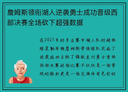 在2025年的季后赛中,湖人队的超级球星勒布朗·詹姆斯带领球队完成了逆袭,成功击败了强敌金州勇士,晋级西部决赛。这场比赛不仅仅是一场常规的胜利,更是一场充满传奇色彩的战斗,詹姆斯凭借其无与伦比的篮球智...